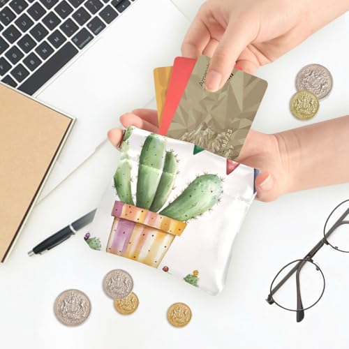 Watercolor Cactus Pattern Squeeze Coin Purse, Leather Coin Purse, Mini Wallet, Compact and Portable, Unisex