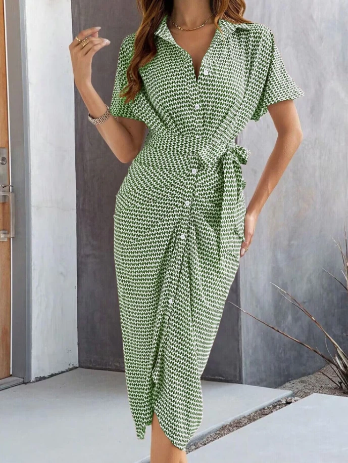 This Women's Summer Turn-Down Collar High Waist Casual Short Sleeved Ruched Button Daily Long Shirt Dress. S-XL combines elegant design with practical functionality. Every detail has been carefully considered to ensure you get the best possible experience. The high quality construction means this product will serve you well for years to come.