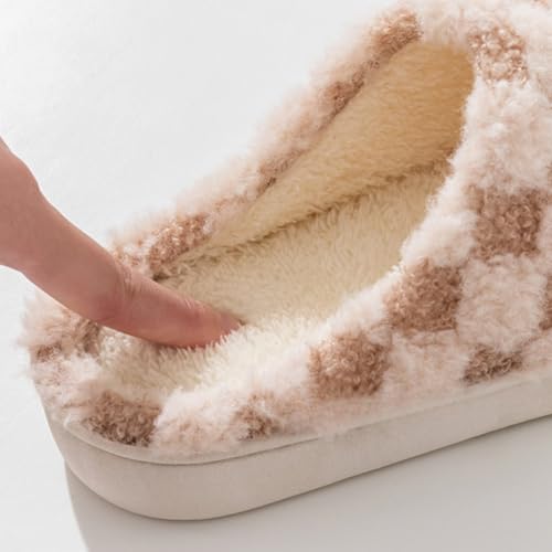 Cotton Slippers Checkered Fuzzy Thick-soled Winter Soft Rubber Bottom Warm Unisex Non-slip Floor Bedroom Home Casual