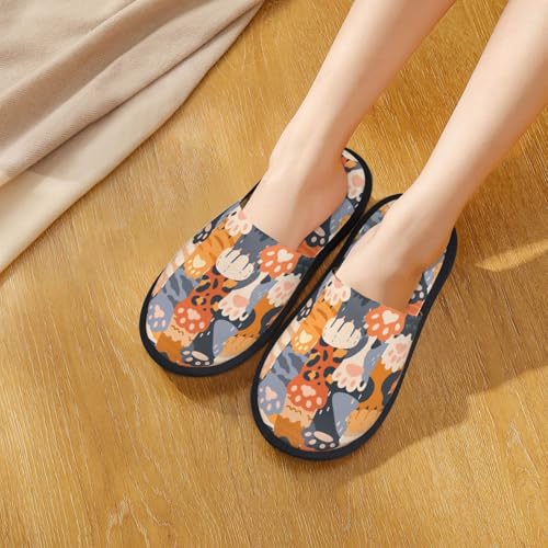 Cute Cat Paw Print Women'S Fuzzy Slip On Indoor Outdoor Winter House Slippers