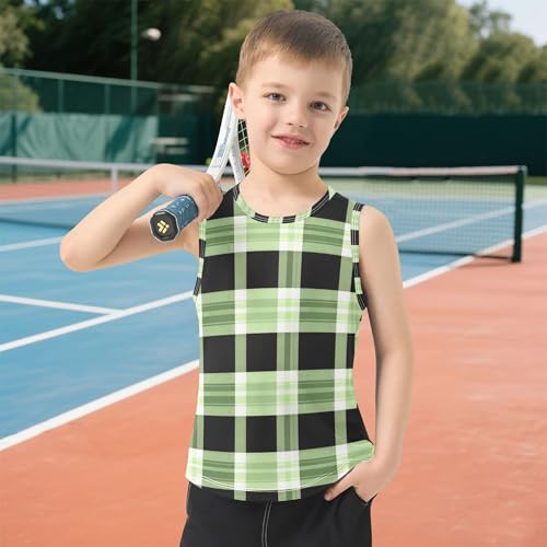 JUNZAN Blue Black Gingham Buffalo Plaid Boys' Tank Top Shirt Sleeveless Casual Vest Tees Work Out Clothes for Running 3T