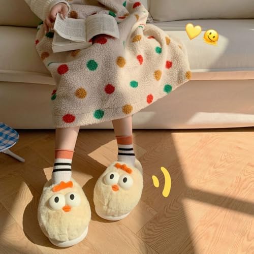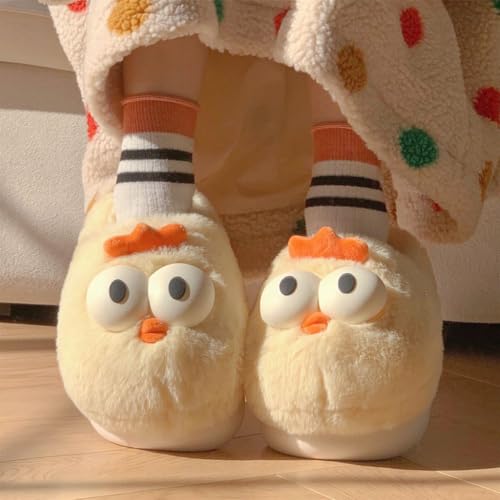 Animal Fuzzy Slippers for Women, Cute Chick Rooster Fluffy Plush Warm Memory Foam House Slippers