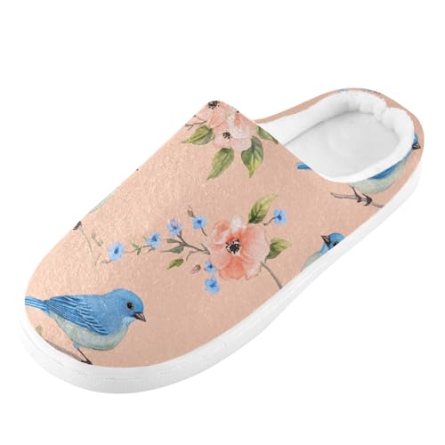 HOT ! Sweet Indigo Bunting Birds Peach Womens House Cotton Slippers Comfort Memory Foam Home Slippers for Outdoor Christmas Presents 6-7