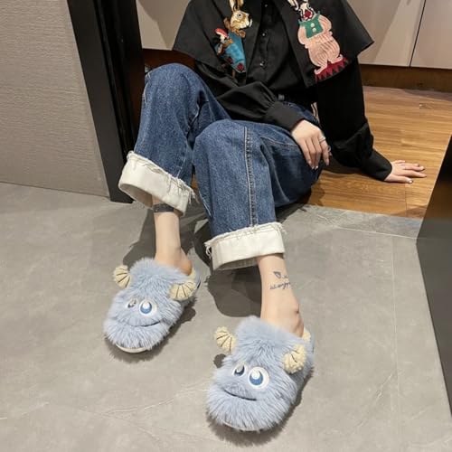 Cute Plush Slippers Monster Horn Y2K Animal Cotton Stuff Slippers Home Furry Fluffy Soft Indoor House Shoes 7