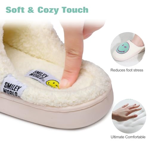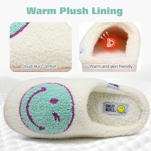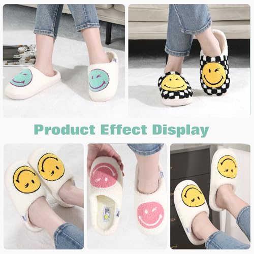 SmileyWorld Smile Face Slippers for Women Men Soft Plush Memory Foam Non-Slip Fuzzy House Shoes Warm Retro Happy Slip-On for Indoor Outdoor