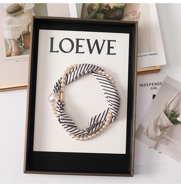Silk Scarf Necklace with Pearl Magnetic Buckle, 2 In 1 Small Necklace Collar Scarf Pearl Necklace Neck Scarf Retro Scarfs