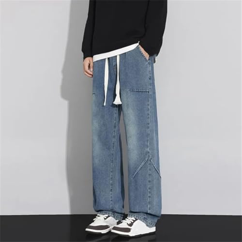 Men’S Casual Drawstring Jeans Spring Autumn Straight Denim Pant Male Loose Full-Length Trousers