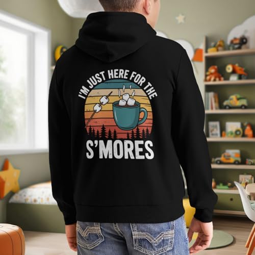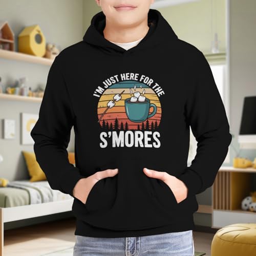 Kids I'm Just Here For The Smores Funny Camping S'Mores Boys Girls Lightweight Kangaroo Pocket Fleece Hoodies