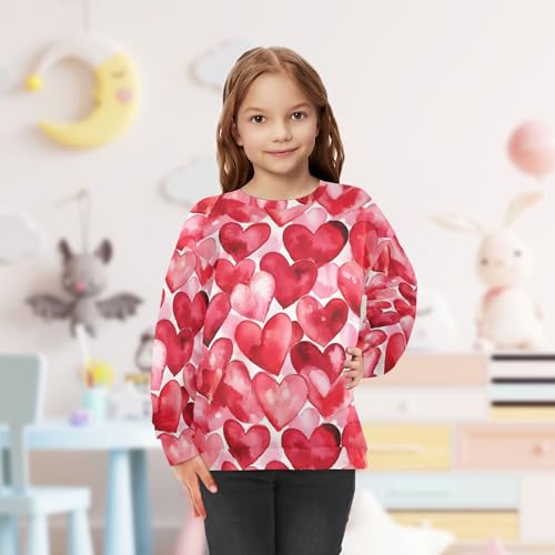 JUNZAN Cartoon Cute Red Love Hearts Big Girls Sweatshirts Hoodies Fleece Kids Pullover Hoodie Camping 4T