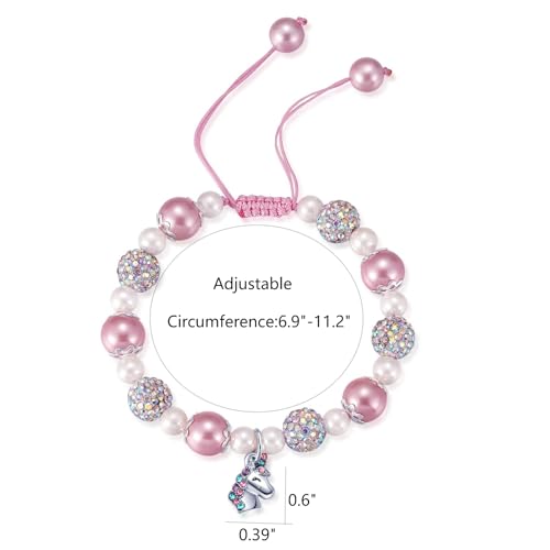 MIXJOY Unicorn Pearl and Rhinestone Balls Pink Bracelet&Card w/Gift Box for Women, Unicorn Lovers Birthday Easter Gifts