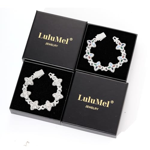 More information about Lulu Mel Cross Infinity Charm Cuban Chain Bracelet for Men Women, Iced Out Silver Colorful Prong Setting 5A Cubic Zirconia Diamond Fashion Four-Leaf Cuban Bracelet for Rapper Gift