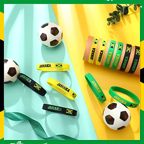 Lenwen 48 Pcs Multicolor Jamaican Country Flag Silicone Bracelet Jamaica Souvenirs Black Yellow Green Sport Wristband Jamaica Bracelet for Men Women Jamaican Birthday Party, 3 Style, 8 x 0.5 Inch 5