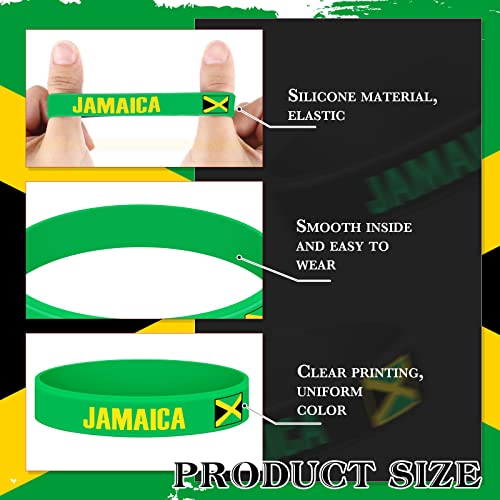 Lenwen 48 Pcs Multicolor Jamaican Country Flag Silicone Bracelet Jamaica Souvenirs Black Yellow Green Sport Wristband Jamaica Bracelet for Men Women Jamaican Birthday Party, 3 Style, 8 x 0.5 Inch 1