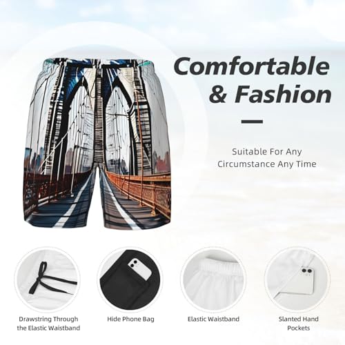 • Compression Liner: Brooklyn Bridge Print Mens Swimming Shorts Feature Built-In Brief Liners That Provide Enhanced Comfort And Support. This Design Helps Reduce Chafing And Discomfort, Especially During Prolonged Swim Sessions Or Active Water Sports.Mens Swimsuits Inseam Feature Elastic Waistbands With Drawstrings For Adjustable Comfort And Secure Fit.