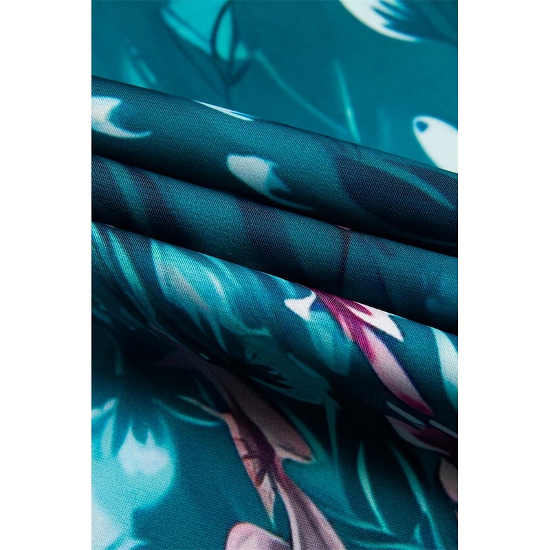 : Designed in a blend of polyester and cotton spandex jersey, this women's dress offers a soft, lightweight feel with just the right amount of stretch for comfort. The fabric is adorned with a vibrant floral print, perfect for warm spring and summer days.