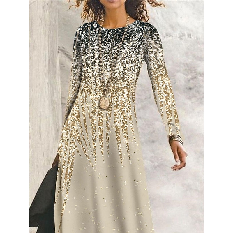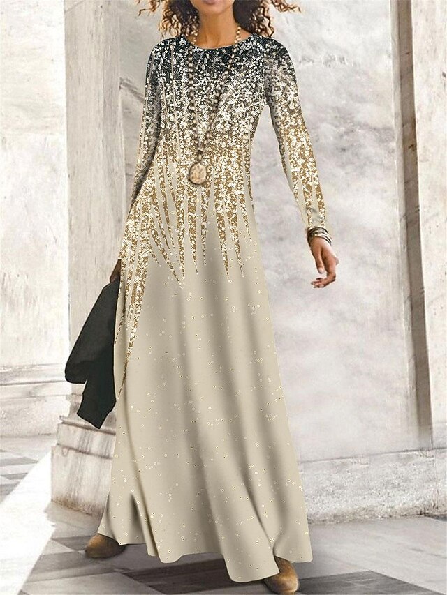 More information about Women's Maxi Dress Vintage Bohemian A Line Dress Crew Neck Long Sleeve Casual Winter Dress Shift Dress Fashion Modern Mature Outdoor Daily Date Regular Fit Ombre Yellow Blue Purple Khaki Fall Winter