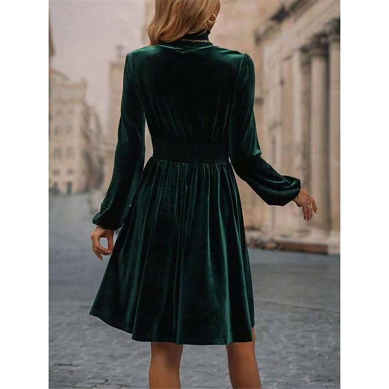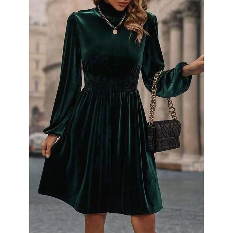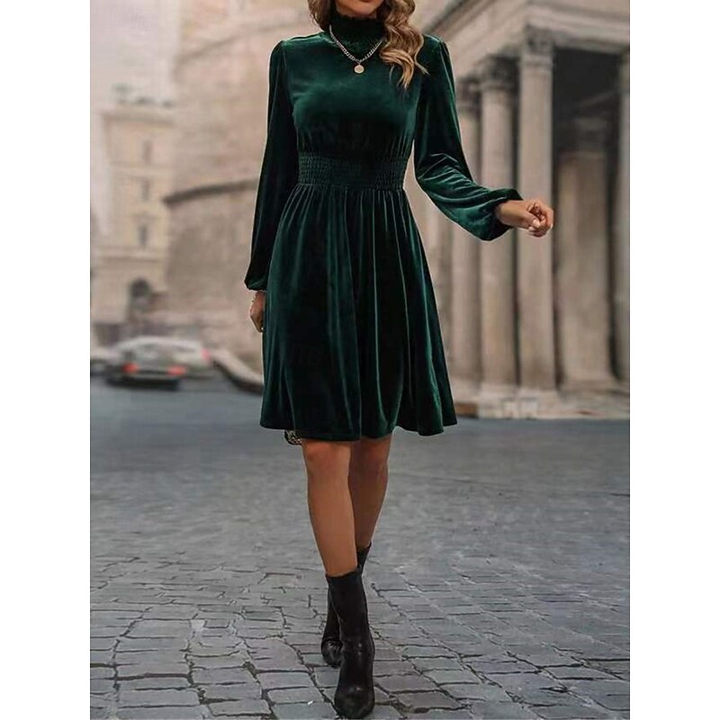More information about Women's Mini Dress Velvet Dress Cocktail Dress A Line Dress Plain Dress Casual Party Street Evening Party Regular Fit Plain Long Sleeve Turtleneck Black Wine Green Fall Winter