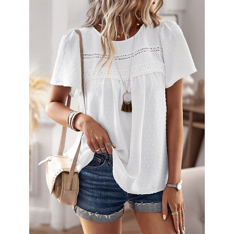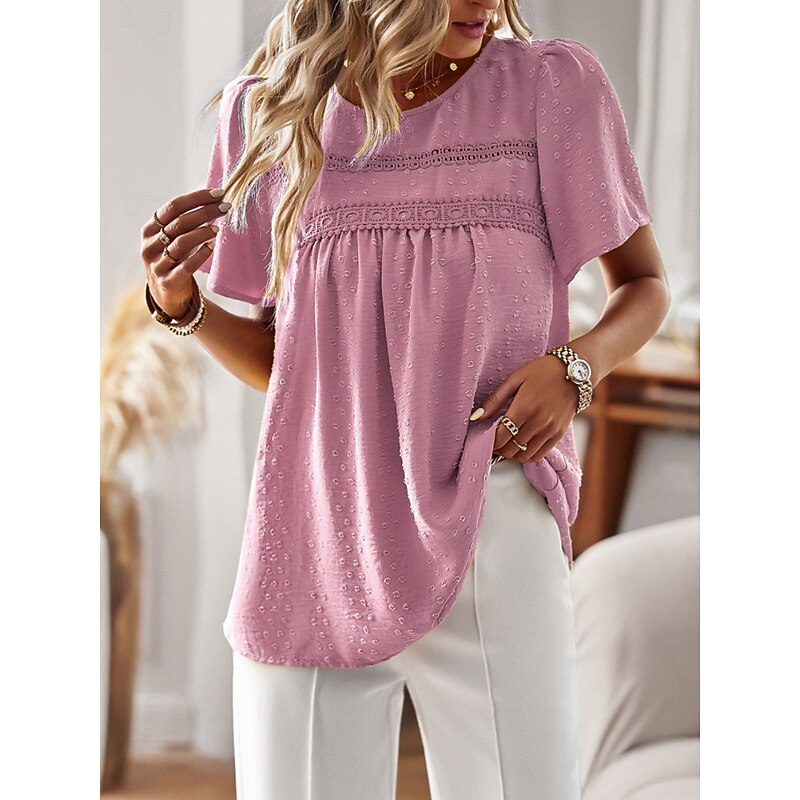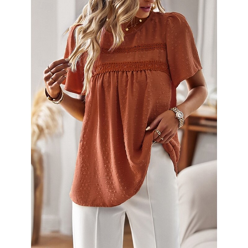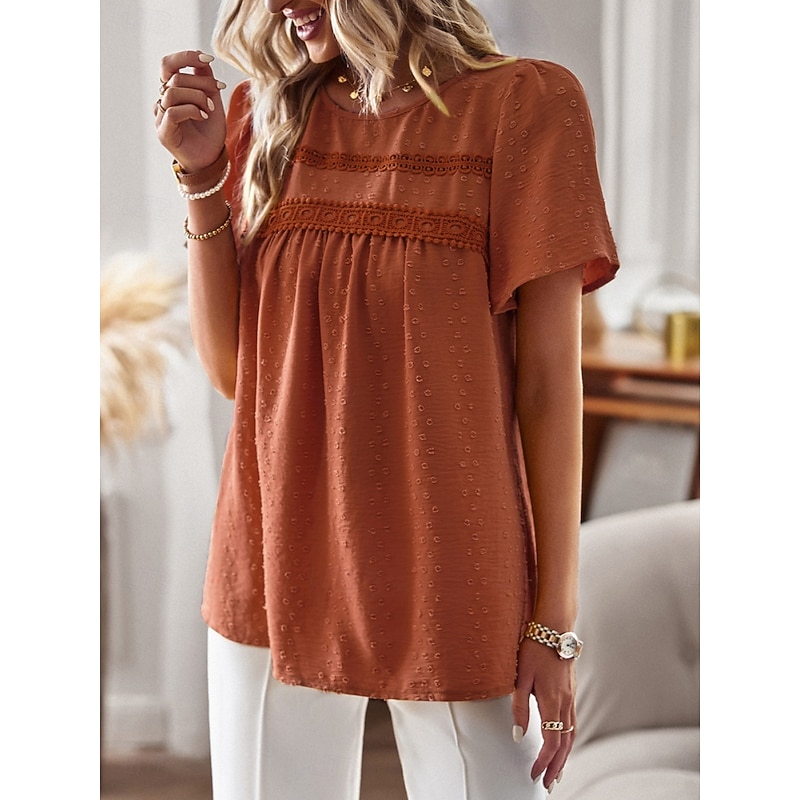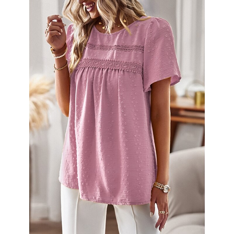 HOT ! Women's T Shirt Plain Fashion Modern Casual Short Sleeve Crew Neck Regular Tops Daily Weekend White Pink Brown Summer