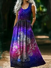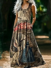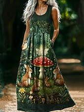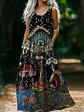 More information about Women's Vintage Round Neck Bohemian Ethnic Mushroom Dress Slip Dress Pleated Casual Boho Party Going out Beach Regular Fit Floral Graphic Abstract Sleeveless