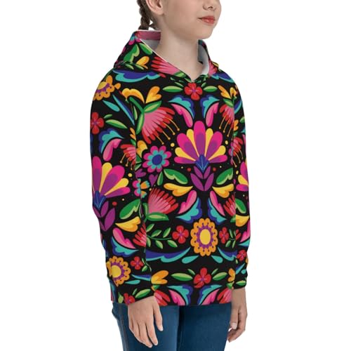 Colorful Floral Embroidery Mexican Kid Hoodies Boys Sweatshirts Girls Pullover with Pocket