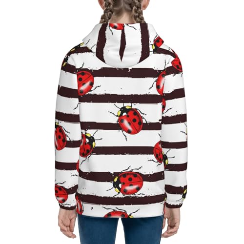 Ladybugs on Black and White Striped1 Kid Hoodies Boys Zip Up Sweatshirts Girls Pullover with Pocket