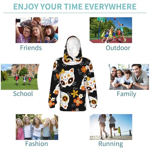 Cat Skulls and Flowers Kid Hoodies Boys Sweatshirts Girls Pullover with Pocket