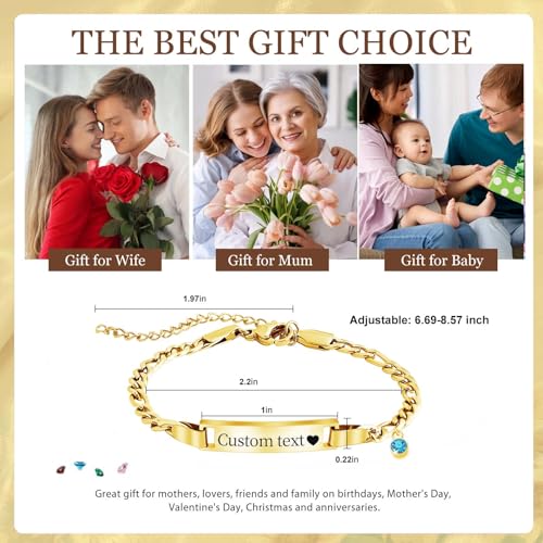 • 【Double-Sided Custom Bracelets】This bracelet comes in 3 colors and 12 birthstones for you to choose from. You can customize any text you want on both sides. Create a one-of-a-kind jewelry! It will become a timeless keepsake.