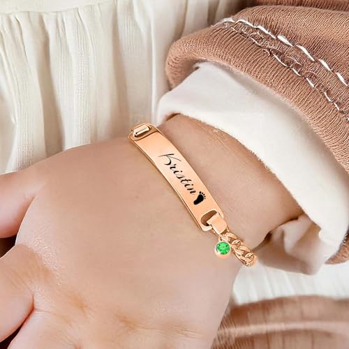 HOT ! 925 Sterling Silver Custom Baby Bracelets for Infant Girls, Engrave Toddler Bracelets with Name and Birthstone, Baby Jewelry for Infant Girls, Personalized Baby Girl Boy Gifts