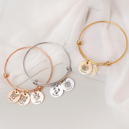 HOT ! Anavia 1/2/3/4 Disc Pet Portrait Bangle Bracelet, Personalized Pet Memorial Expandable Charm Bracelet Jewelry Gift, Customized Round Disc Photo Engraved Dog Cat Bracelet for Animal Lovers