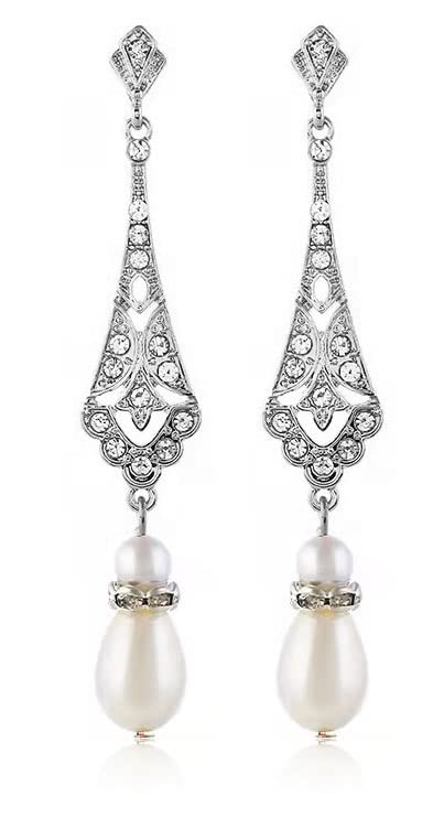 More information about Cizoe Art Deco 20s 30s Flapper Acessories Jewelry Set Great Gatsby Inspired Bridal Pearl Elastic 20s Pearl Bracelet Bangle Long Pearl Necklace Rhinestone Pearl Earrings for Women and Girls