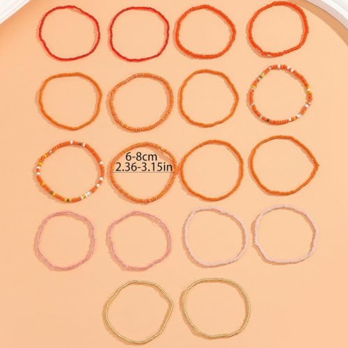 COLORFUL BLING 18pcs Bohemian Stackable Elastic Beaded Bracelets Summer Beach Handmade Seed Beaded Jewelry Bracelets for Women 5