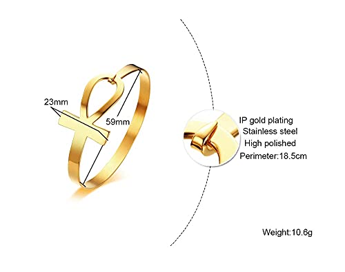 Hisatan Stainless Steel Egyptian Ankh Cross Key of Life Open Cuff Bangle Bracelet for Women 4