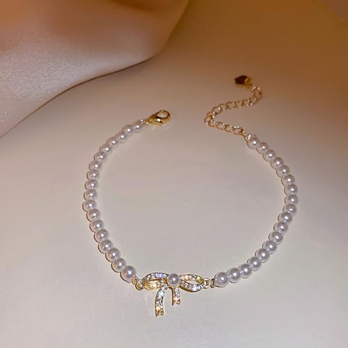 HOT ! Pearl Bracelets for Women Dainty Bow Charm Bracelet Baroque Pearl Jewelry Trendy Stuff Bridesmaid Bridal Wedding Jewelry Gifts
