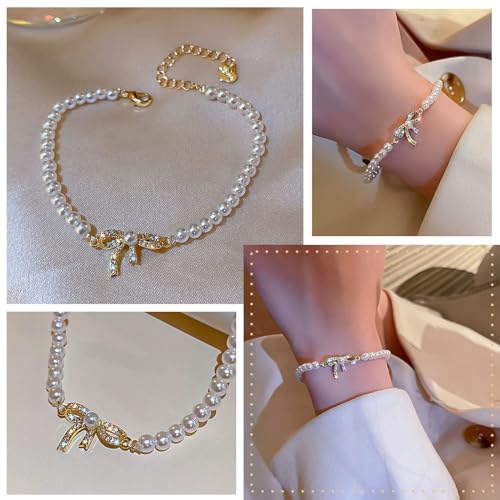 • Pearl Bracelets for Women: Timeless Elegance This stunning pearl bracelet is perfect for women who appreciate classic sophistication. Featuring lustrous pearls and an eye-catching bow charm, it adds a timeless elegance to any look. Ideal for weddings, special occasions, or elevating everyday outfits, this bracelet is designed to enhance your style with its versatile beauty.