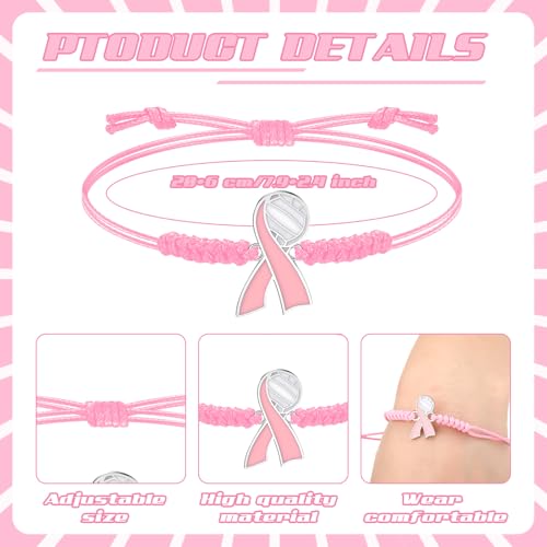 20 Pcs Breast Cancer Bracelets Pink out Volleyball Ribbon Bracelets Breast Cancer Awarenes Adjustable Cord Ribbon Gifts for Women