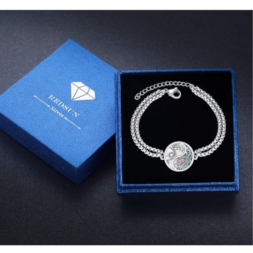 Material: Sterling SilverMetal type: Sterling SilverClasp type: Lobster ClawChain type: Cable ChainGem type: Cubic Zirconia【Dragon Phoenix Yinyang Bracelet Design】Both dragon symbols of power, nobility, might and luck,the dragon amulet necklace has a beautiful meaning of bringing protection, wealth and good luck. It is a classy and masculine dragon bracelet for men. The yin yang symbol represents harmony and balance. The combination of the dragon and yin yang in this bracelet design creates a powerful and meaningful symbol.【S925 Sterling Silver Yin Yang Bracelet】 The silver dragon Yin Yang pendant is made of S925 sterling silver,bottom Natural Abalone Shell and Baibei,The dragon bracelet is add oxidation process, which makes the jewelry more retro and stereoscopic. No rust, No fade. It will give you a comfortable wearing experience that won't hurt skin at all.【Dragon Phoenix Yinyang Bracelet Size】 dragon yinyang pendant measure 23mm, Chain measure 20cm that suitable for all people. Yin Yang bracelet gifts for women is suitable for matching T-shirt, jeans, suit, sweater, coat etc. and it would be a nice accessory for you to show off yourself on the daily life,party,date,friends gathering or any occasion.【Best Gifts: 】The dragon bracelet is packed in a delicate jewelry box, This dragon bracelet is a very popular Father's Day, Christmas, Valentine's Day, Birthday or Anniversary, New Year's Day gift for your husband, boyfriend, brother, fiancé, son, grandson, cousin, uncle or yourself.[Excellent Customer Service]:If you have any questions about our Dragon Phoenix Yinyang bracelet or after-sales, please feel free to contact customer service, we will reply with a solution that satisfies you within 24 hours. Perfect for everyday use. High quality materials and excellent craftsmanship ensure long-lasting durability.