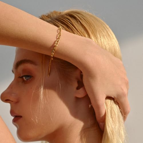 HOT ! Gold Cuban Link Chain Bracelets for Women, 18K Gold Plated Marina Link Bracelet Stackable Minimalist Cute Trendy Gold Bracelets for Women Jewelry Gifts