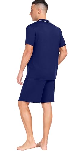 PrinStory Mens Pajamas Set Summer Pjs Sets Lightweight Short Sleeve Pajama Soft Sleepwear Loungewear with Pockets