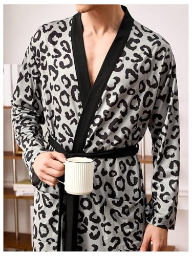 OYOANGLE Men's Leopard Print Long Sleeve Belted Bathrobe Soft Lightweight Kimono Robe Sleepwear 1