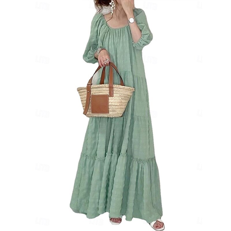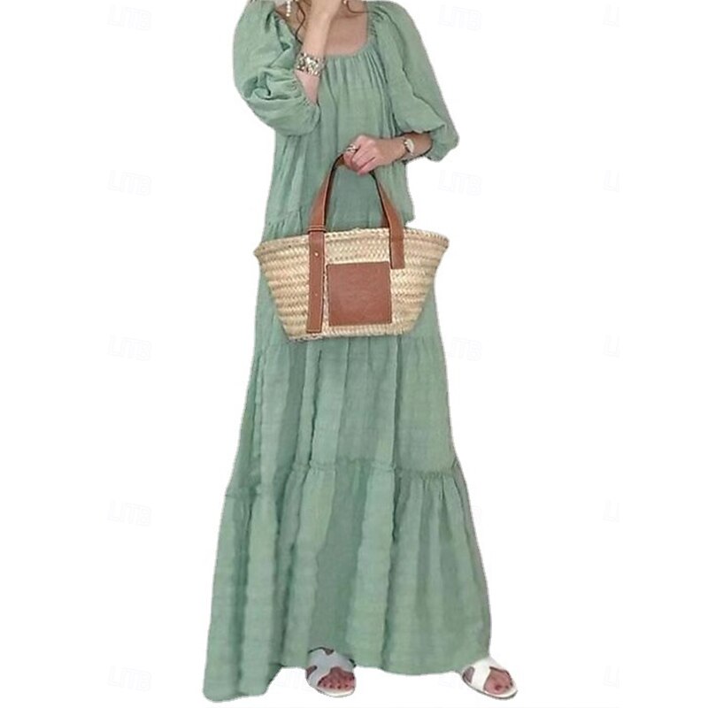 Women's Maxi Dress Casual Dress Summer Dress Basic Casual Vacation Daily Regular Fit Plain Half Sleeve Crew Neck Green Khaki Summer 1