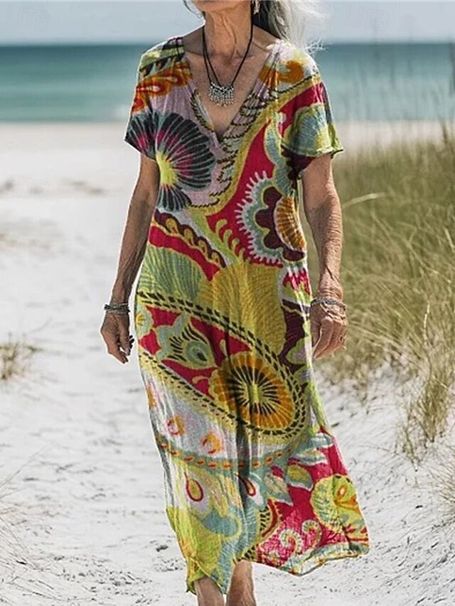 Highlights - Perfect for summer occasions - Made of comfortable polyester fabric - Stylish short sleeve design - Specifically for women - Ideal for dates and parties - Casual and trendy cotton linen dresses - Features a fashionable print design - Flattering V neckline