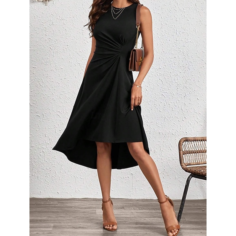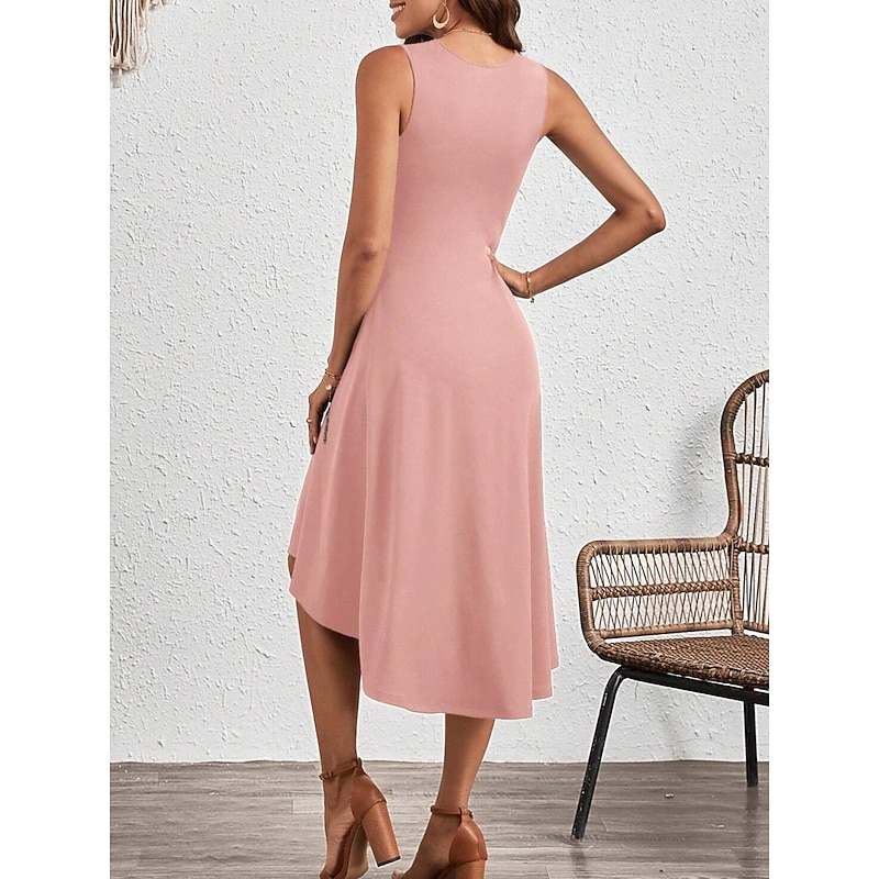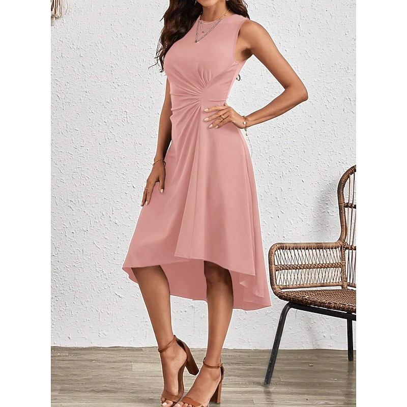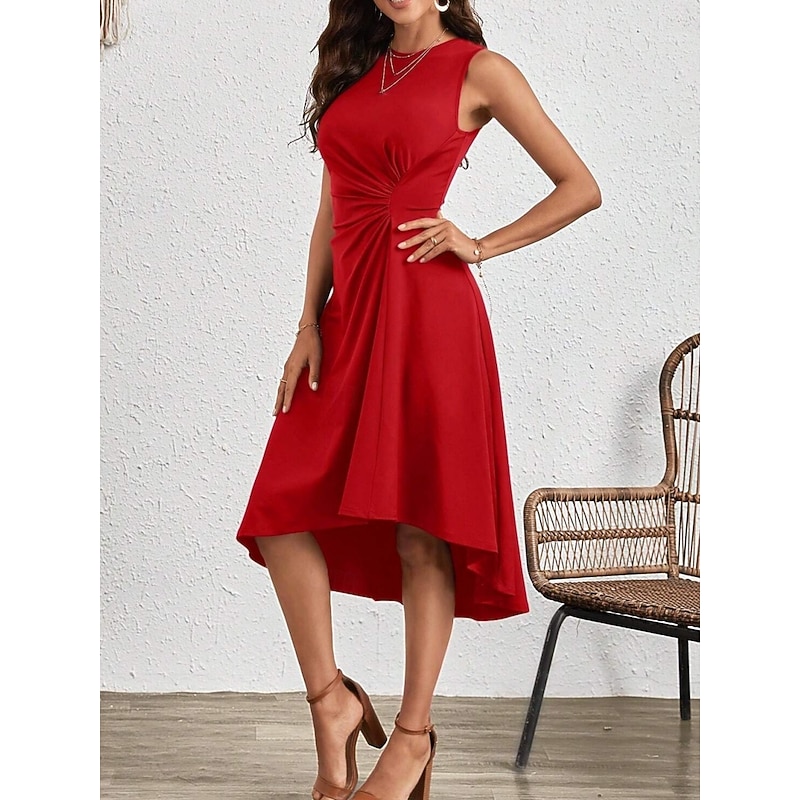 Why Choose Women's Midi Dress A Line Dress Solid Color Bodycon Dress Work Dresses Semi Formal Office Slim Graphic Sleeveless Crew Neck Black Pink Red Blue Summer?