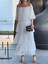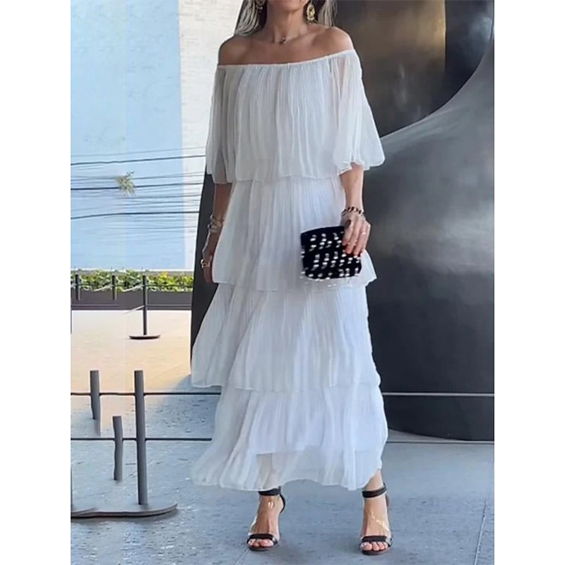 This Women's Midi Dress Cocktail Dress Wedding Guest Dress Chiffon Elegant Fashion Modern Outdoor Vacation Regular Fit Plain Half Sleeve Off Shoulder Black White Gray Summer Spring combines elegant design with practical functionality. Every detail has been carefully considered to ensure you get the best possible experience. The high quality construction means this product will serve you well for years to come.