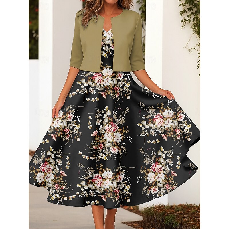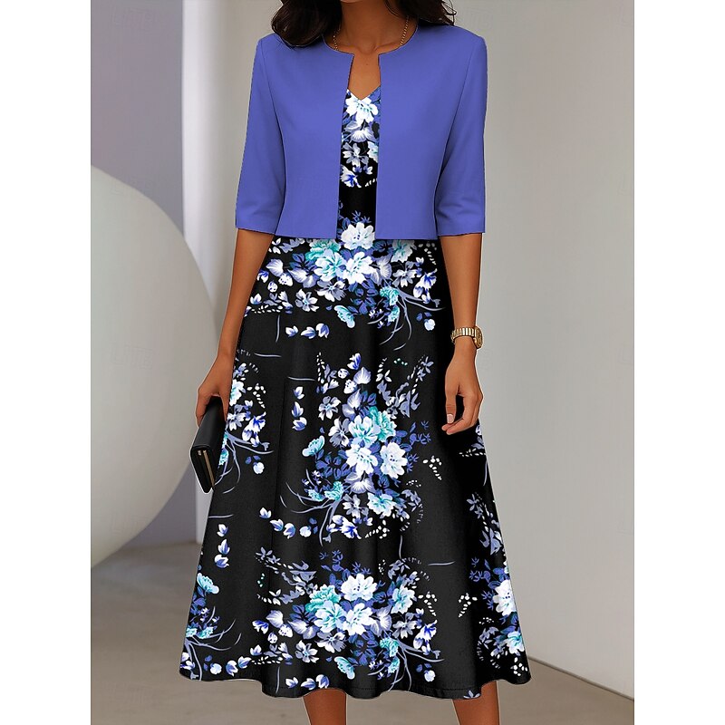 This Women's Two Piece Dress Sets Midi Dress with Jacket Elegant A Line Dress Half Sleeve Party Floral Print 3/4 Length Sleeve Crew Neck Daily Yellow Blue Purple Spring Fall Regular Fit combines elegant design with practical functionality. Every detail has been carefully considered to ensure you get the best possible experience. The high quality construction means this product will serve you well for years to come.