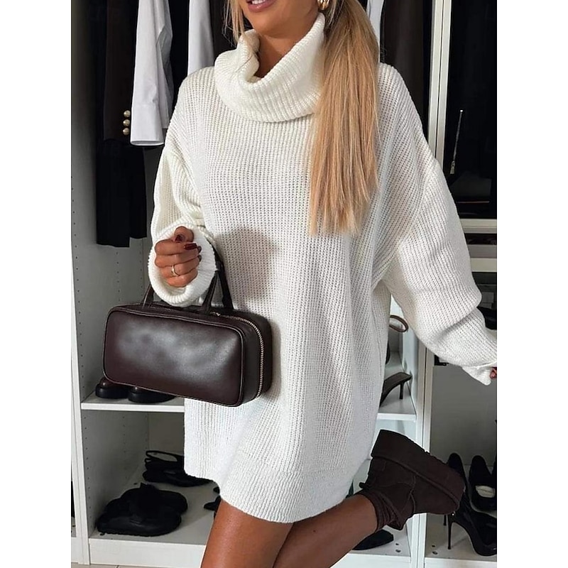 This Women's Sweater Dress Daily Stylish Basic Pure Color Ribbed Turtleneck Knitted Long Sleeve Regular Tops Knit Outdoor Daily Black White Fall Winter combines elegant design with practical functionality. Every detail has been carefully considered to ensure you get the best possible experience. The high quality construction means this product will serve you well for years to come.