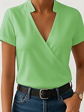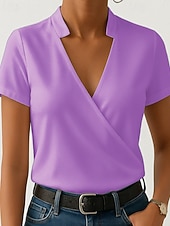 More information about Women's T Shirt Plain Casual Short Sleeve V Neck Regular Tops Daily Going out White Blue Purple Green Summer