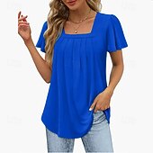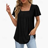 This Women's Blouse Summer Tops Solid Color Elegant Stylish Basic Short Sleeve Square Neck Regular Tops Daily Ruched Black White Pink Blue Green Summer combines elegant design with practical functionality. Every detail has been carefully considered to ensure you get the best possible experience. The high quality construction means this product will serve you well for years to come.
