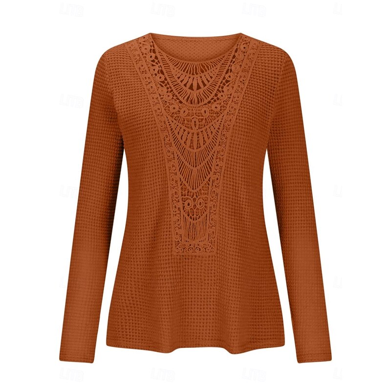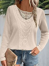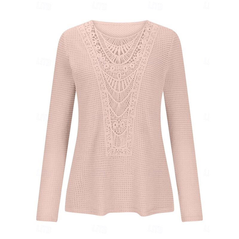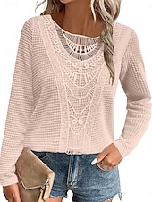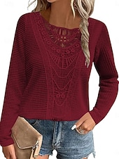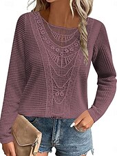 More information about Women's Lace Splicing Top Solid Color Stylish Casual Long Sleeve Crew Neck Regular Tops Daily Lace Patchwork Pink Wine Blue Fuchsia Orange Summer Spring Fall