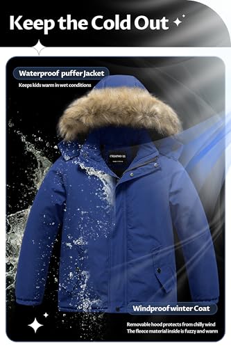 CREATMO US Boys' Waterproof Snow Coat Parka Windproof Winter Jacket With Detachable Fleece Hood