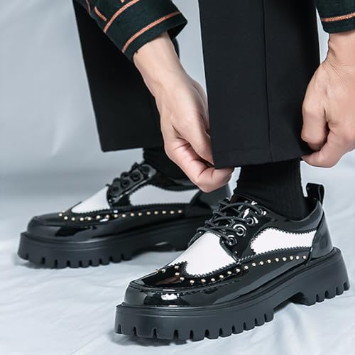 Men's Patent Leather Platform Block Heel Derby Shoes Fashion Studded Lug Sole Lace Up Oxford Shoes Casual Business Office Dress Shoes 7